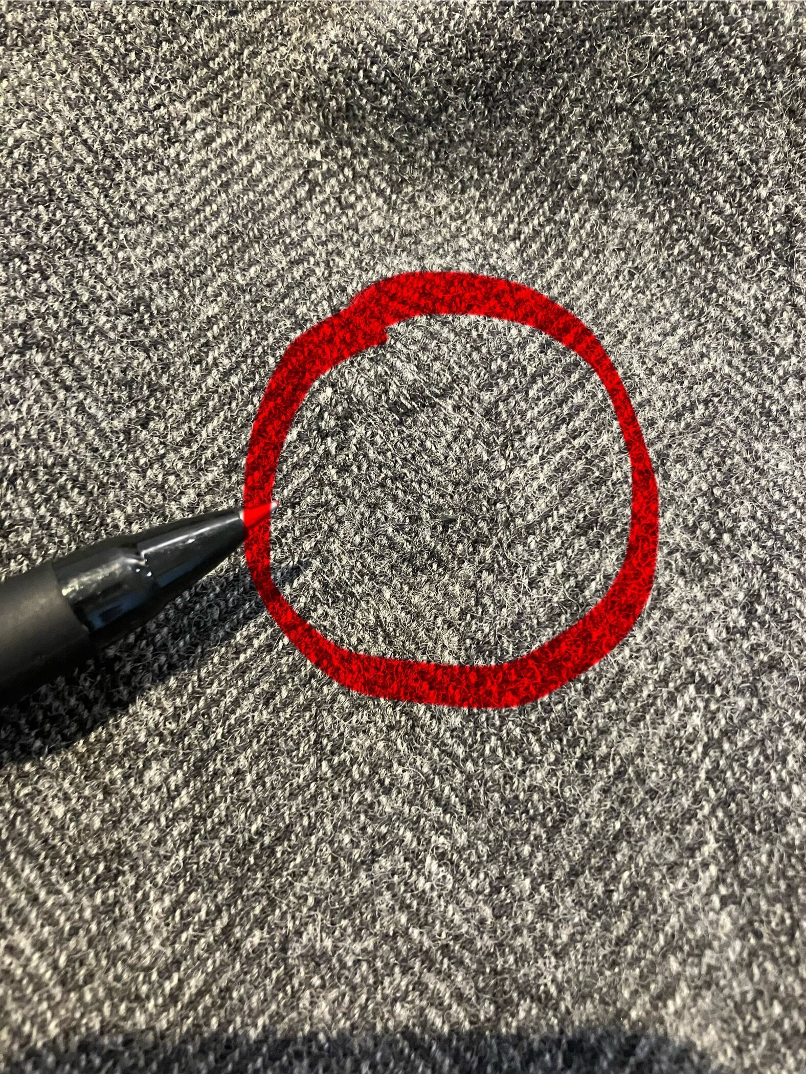 写真にあるように左足のスソ辺りにキズがありましたので、お直し屋さんでリペア済みです。