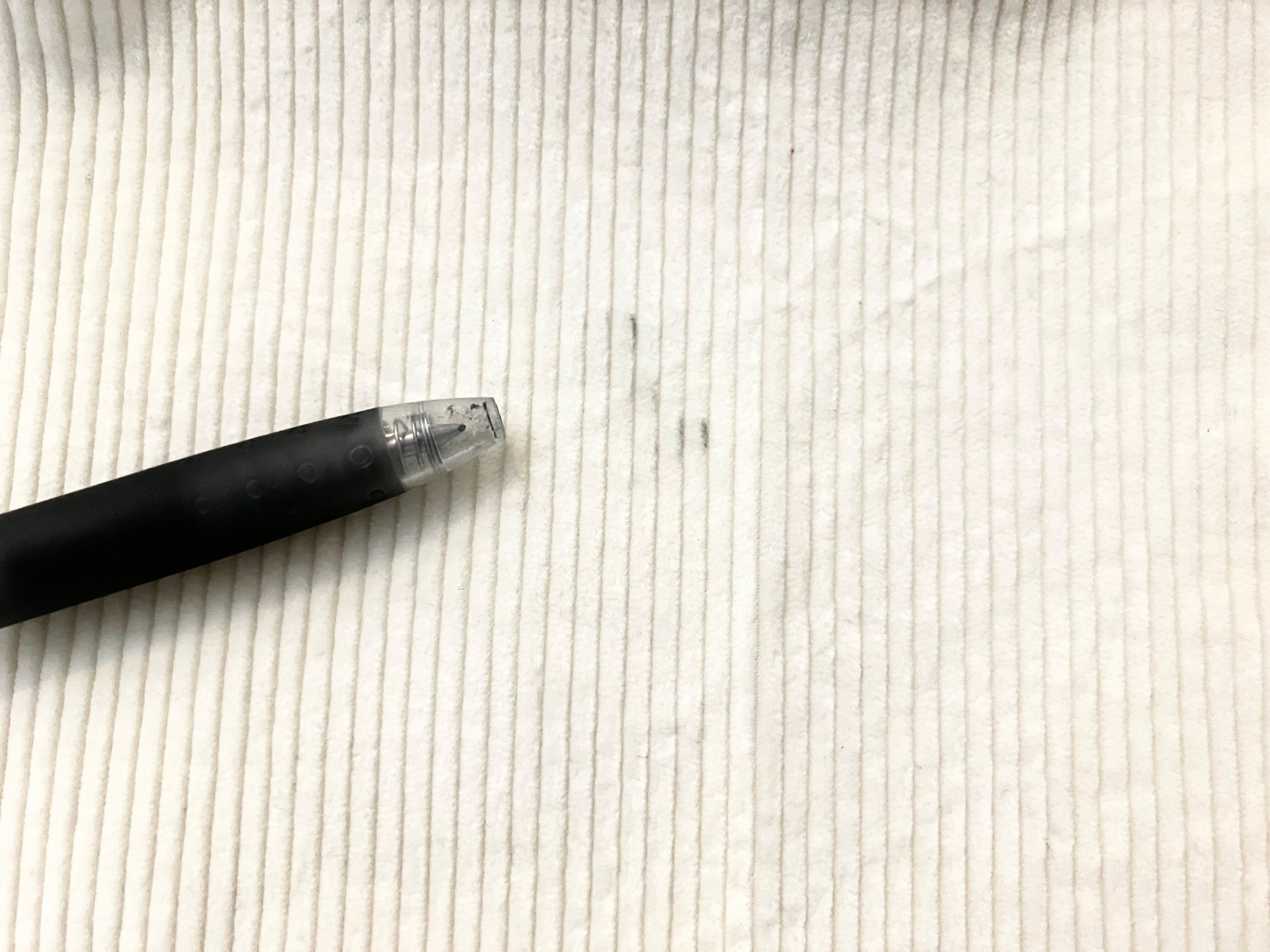 写真にあるように左足のひざの裏に薄い汚れがあります。